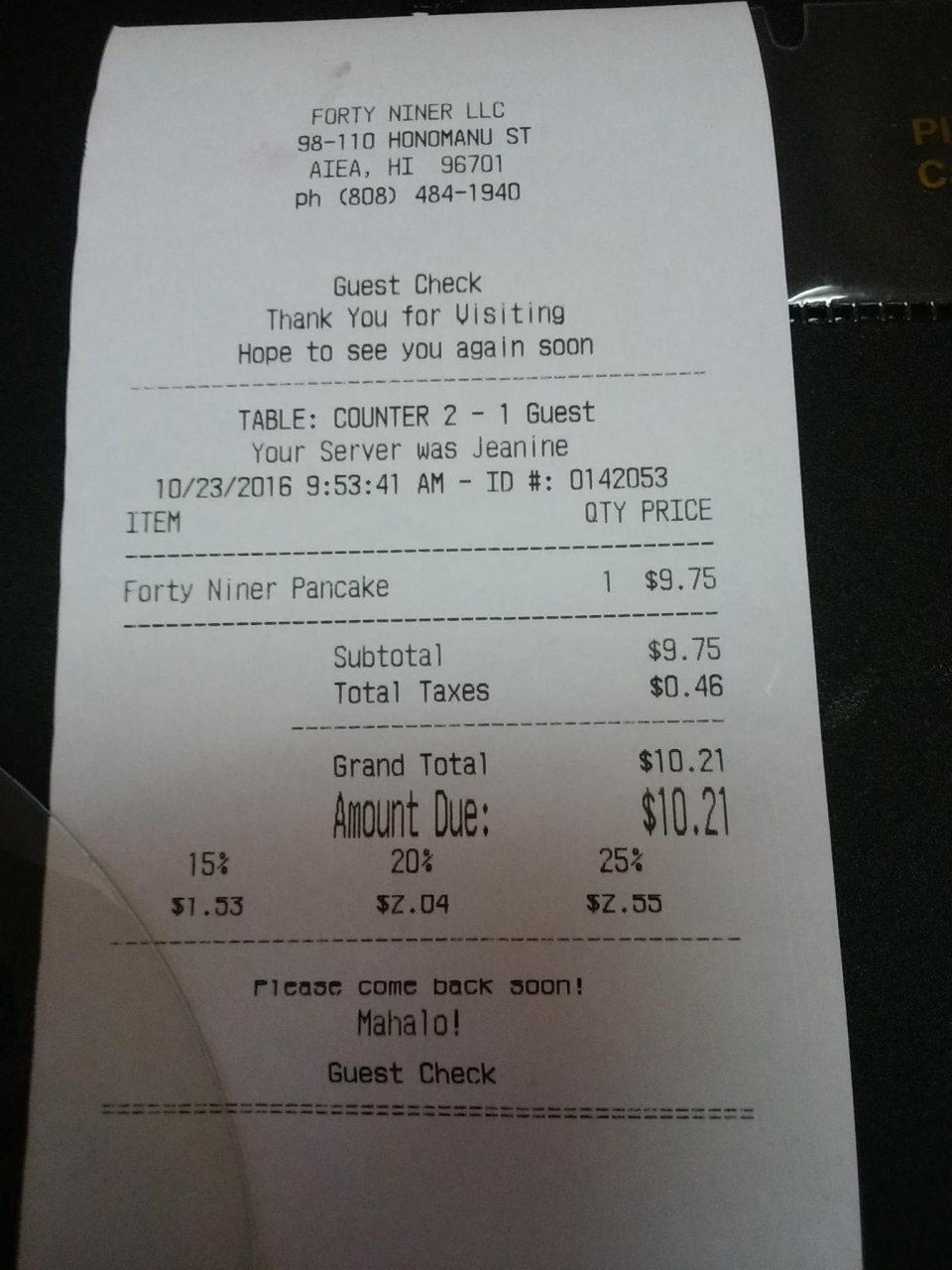 9:33 TVで何度も紹介されているフォーティーナイナーパンケーキを注文!
