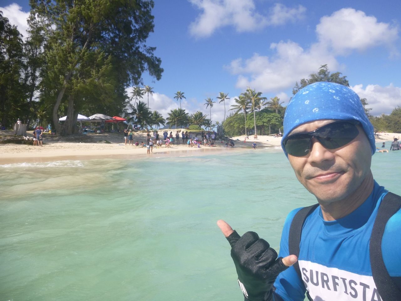 写真のとおり岩礁が防波堤のようになっていて、波が入ってこない地形になっています!