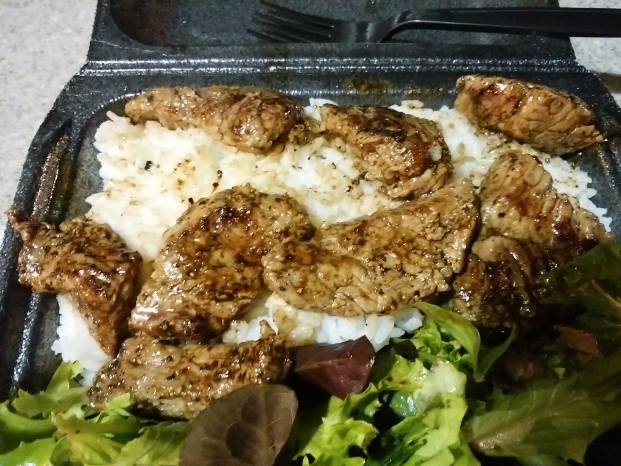 そしてステーキ・・・塩コショー系の味付けで、味も焼き加減も申し分なく、旨い!