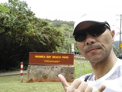 13:02 レンタカーで飛び込み岩で有名なワイメアビーチに到着!