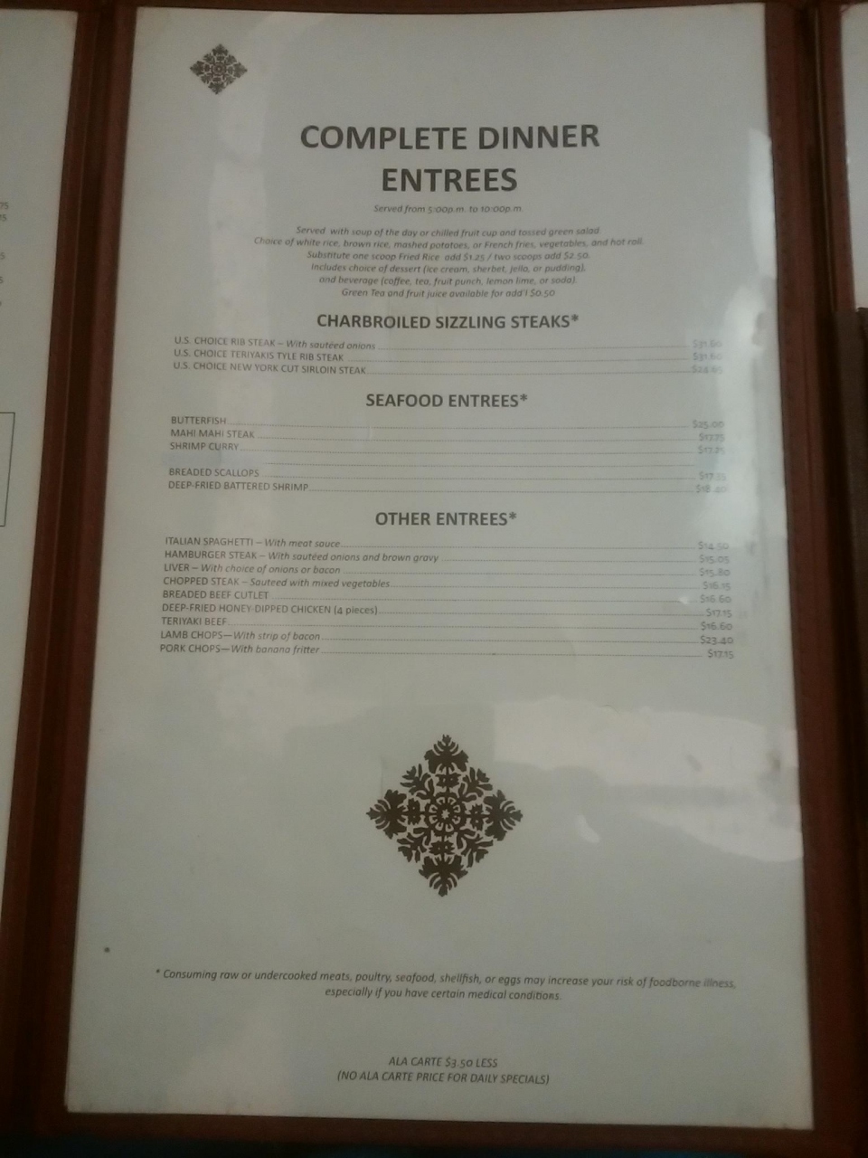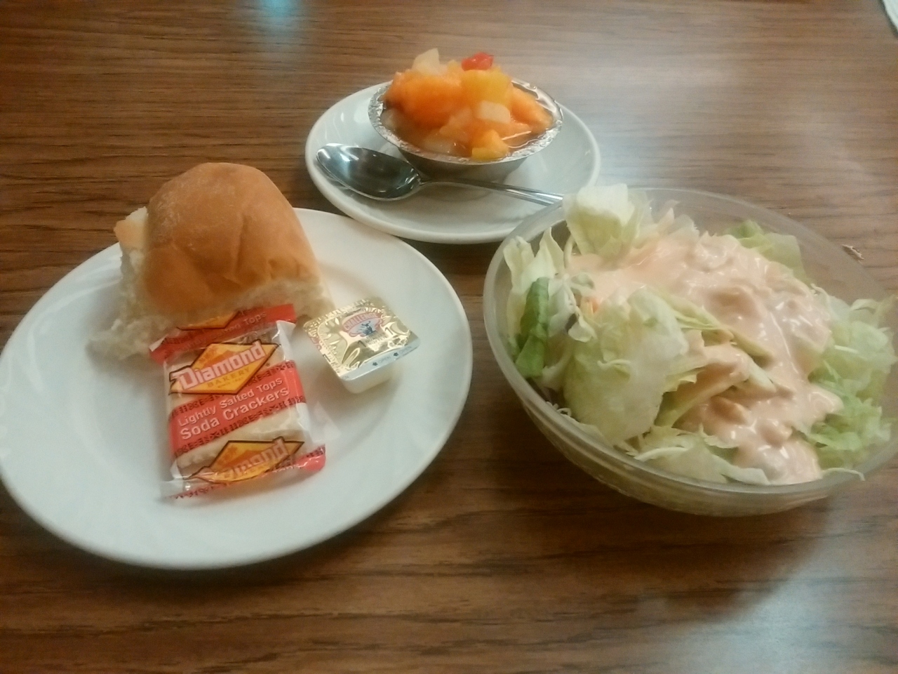 コンプリートディナーということで、メインに対してライス、パン、サラダ、フルーツカップ、ドリンク、アイスクリームなどのデザートが付いてきます!