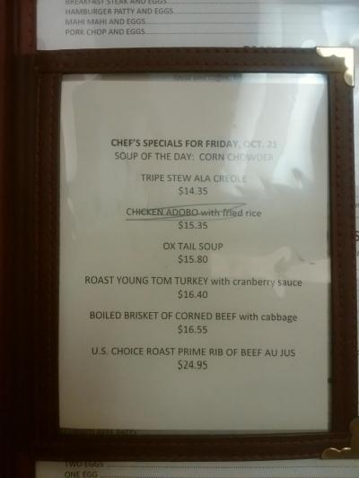 到着したのが現地時間の10時過ぎだったのですが、ロコたちでにぎわっていて、空いていたテーブルは2つだけでした。