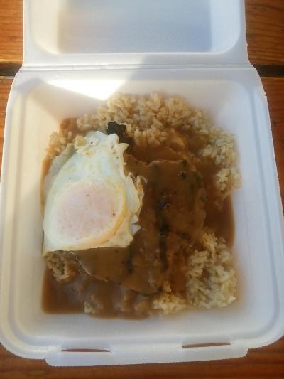 ハンバーグの形や盛り付けのテキトー感がなんともハワイアンです!