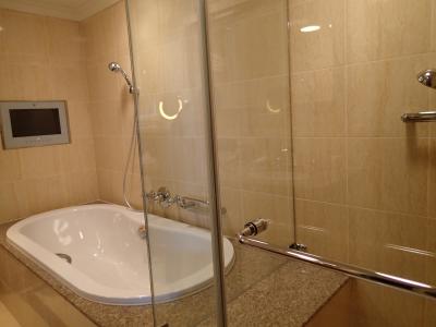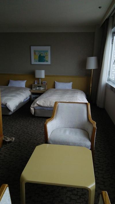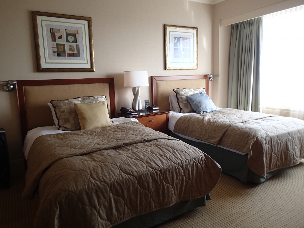 ツインなのにベットがくっついている。便座は冷たく、バスルームは狭い。