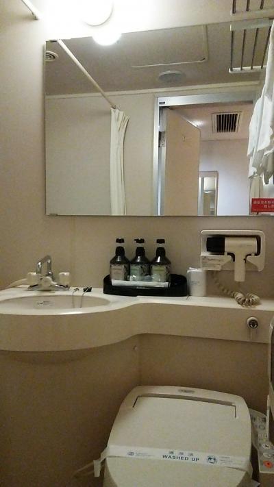 JR二日市駅が工事中のため、ホテルとは反対側になる表口から出なければならない。その為に、線路沿いに7~8分程度歩かねばならず、蒸し暑い中、汗だくになって到着。フロント正面には、ビールは自販機、なぜか缶チューハイは冷蔵庫に入って売っている。近くの二日市温泉旅館が無料で利用出来るが、こんなに暑いと戻って来るまでに汗だくになるので利用せず。