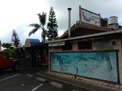 サウスコナ、コーヒーベルト地帯にあるカフェです。朝は混むと聞いて早めに向かうとすでに数台の車がありました。すでにテラス席は満員でしたが奥の半オープンテラスのほうが広々できました。