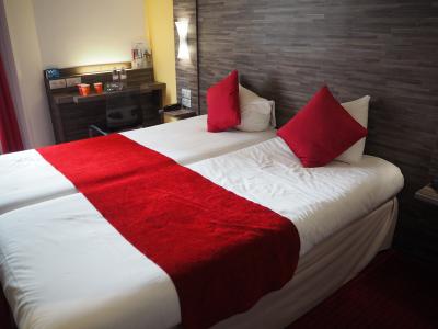 モンパルナスからのTGVに乗るために宿泊。初めはスタンダードルーム、3泊の地方から帰りスイートルームに。二つ星のスイートなのでたいして期待はしていなかったが広々してペントハウス。朝食付きで内容も充実。なによりもフロントがどなたもアジア人の私たちにも親切で英語で対応してくれた。立地もよくレストラン、スーパーには不自由しない。もしパリにいくことがあればぜひ利用したい。