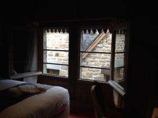 一万円以内でモンサンミッシェルの島内ホテルに泊まれた。建物はかなり古いが、グランドリュを見下ろせる木組みの可愛らし部屋だった。wi-fiがスムーズではなかったが、朝食は充実。昼前に着いたがチェックインは三時半だったので荷物だけ預け観光にでかけた。