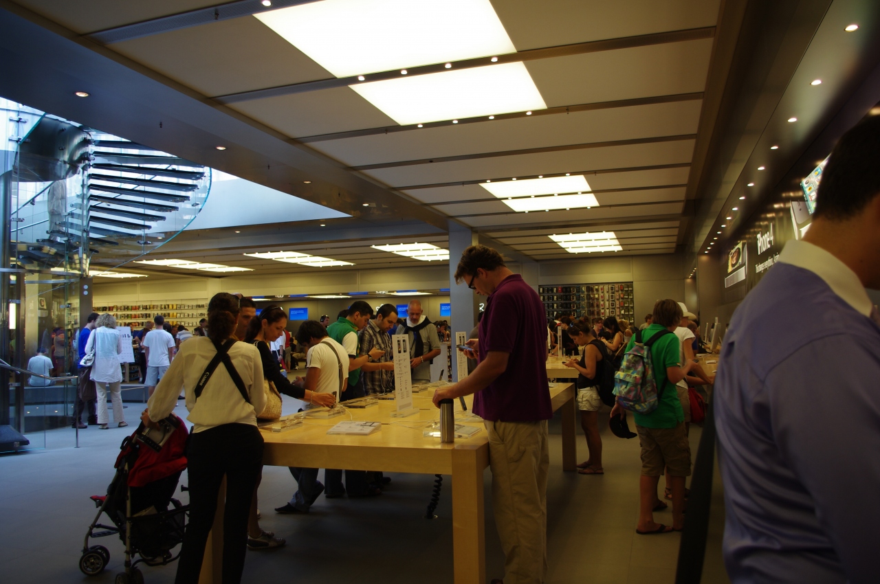 大きな店舗でした。人もたくさんでしたが、デモ用のipadが、たくさんあり子供も大人も自由に使って楽しめました。世界各国の観光客がいました。スタッフは多言語を話せるようでスムーズに対応しているのが印象的でした。