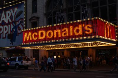 NYの街中にはいたるところにマクドナルドがありましたが、このタイムズスクエアのマクドナルドはこれぞアメリカと言った感じの電飾看板でとてもきれいで目立ちました。お味は世界共通。でも日本にはないメニューをあえて頼みました。