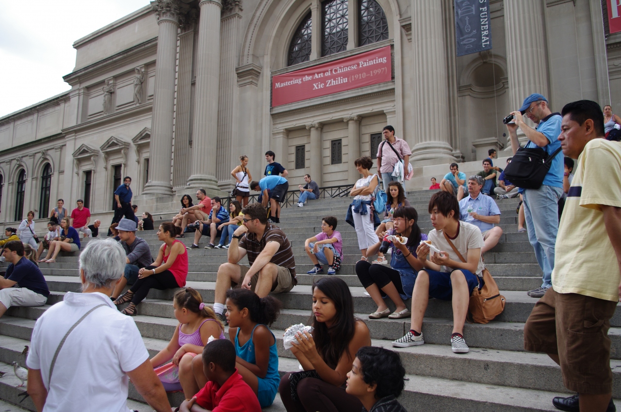 作品の写真を撮ってよいとは知りませんでしたのでたくさん写真に収めました。人混みでしたが、とても広いので不自由は感じません。入り口付近の階段に皆座っていたので、そこでホットドッグを食べました。- 旅行時期