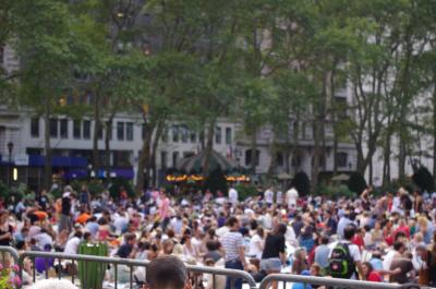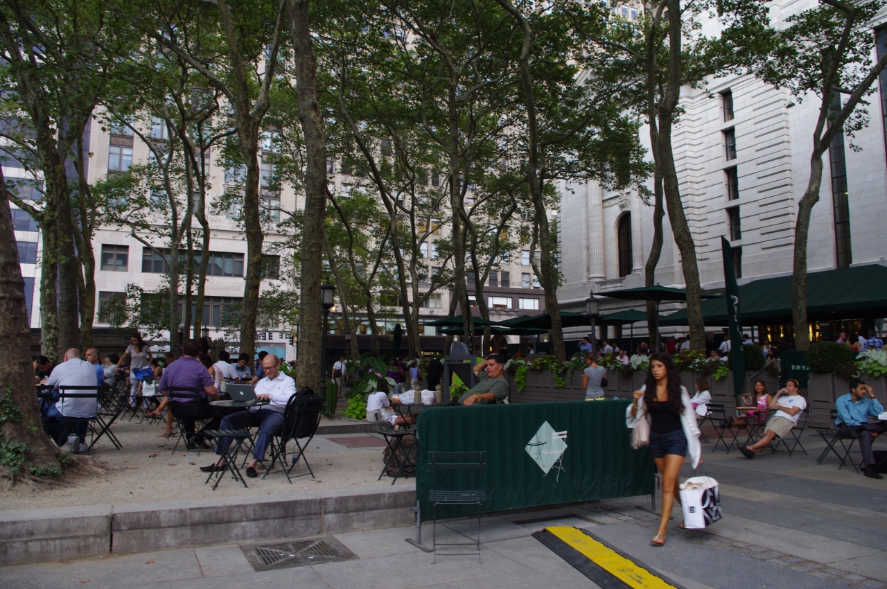 10日間の滞在中ほぼ一日おきに行きました。街中にありながら緑豊かでけして大きな公園ではありませんがニューヨーカーの憩いの場所という感じがしました。近くの日本食のお弁当を買ってここで食べたり、ミニコンサートみたいなのもやっていました。昼も夜も楽しめます。
