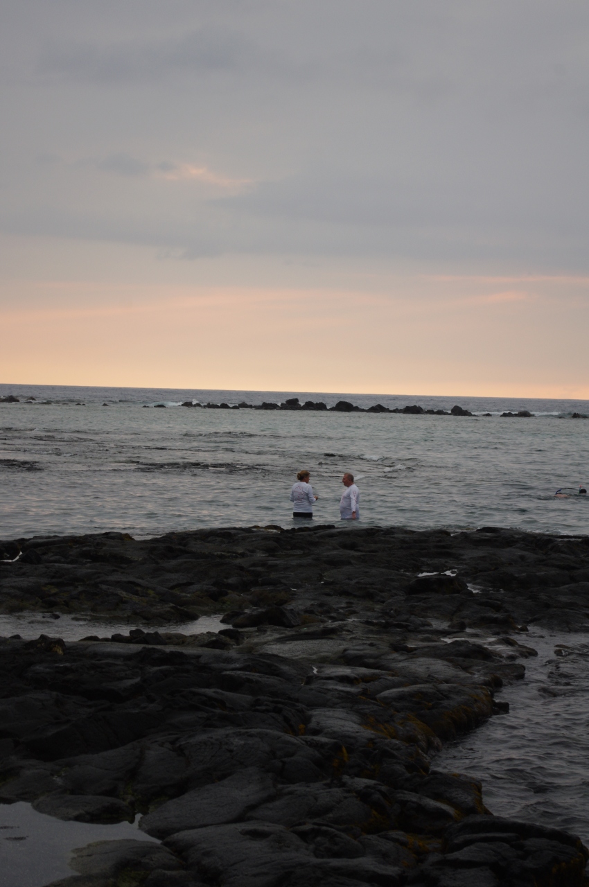 サンセットで行きました。もう日が落ちてもロコファミリーがのどかにシュノーケルをしていました。昼間でしたらきっとホヌがたくさんみれたでしょう。数年前まではおとなりのホテルのレストランがビーチから行けたのですが、閉鎖され残念です。