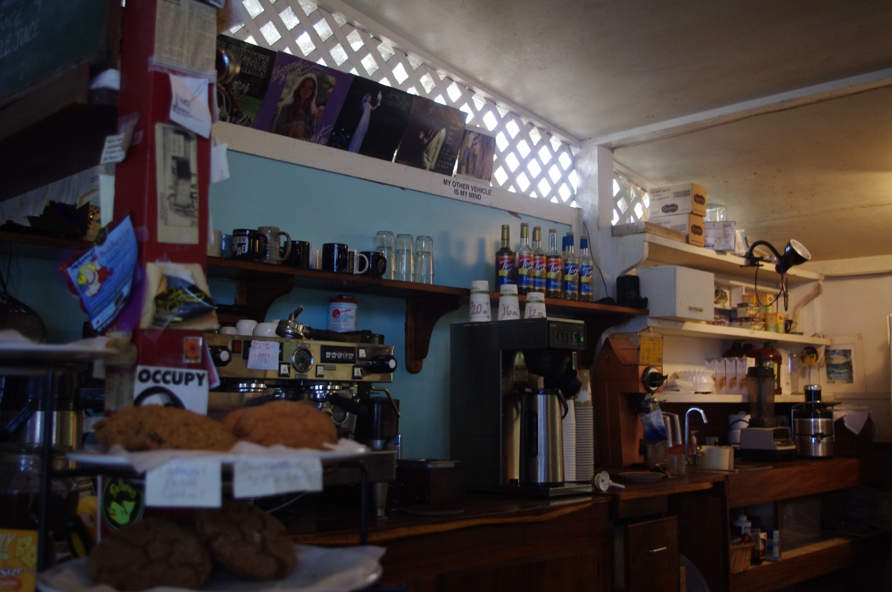 ホノカアの町は小さくてとてものんびりした感じ。ワイピオ渓谷へも近いです。こちらのカフェでのんびりしました。ロコにも人気のようで近所のおじさんがコーヒーを飲みに来るといった感じです。建物は古いですがとてお味があります。