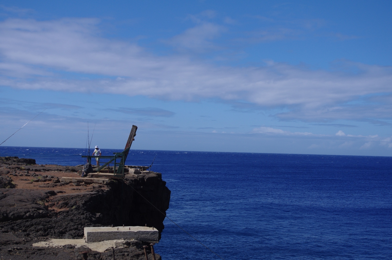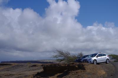 カイルアコナからずいぶんと走りました。サウスポイントに行くまでにはレンタカー走行禁止の道路も走らなくてはならないのですが、どうしてもサウスポイントに行きたかったので・・思ったほど悪路ではありませんが、なにかあったら大変な場所です。人影もまばらで昼間でしたが少し怖かったです。途中、風力発電基やのどかな牧場もあり行く価値はあります。