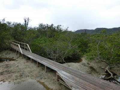他の観光客と同じように進んでいくと、マングローブ林の中に入る通路を発見。マングローブをこんなに間近で観ることは初めてだし、根元のゴロゴロと泥まみれの巻き貝。