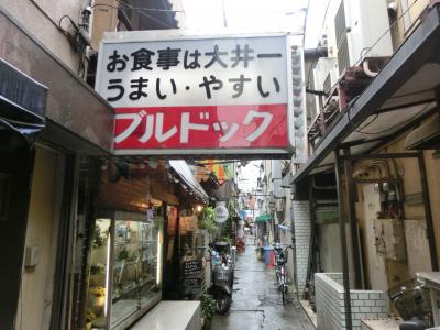 地元、大井町の駅に向かう商店街の歩道が、ゆっくり歩く人で溢れているので利用をしている細い路地。 その昭和の闇市がまだ残っているような雰囲気の暗くて狭い路地にお店はあります。