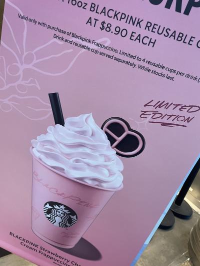 ちょうど、ブラックピンクとのコラボドリンクが発売されており、試飲をやっていたのでいただきました。(ちゃんとチョコレートつき!)