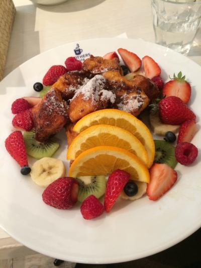 女性のお客さんがほとんどでした。バゲットを使ったここのフレンチトーストがどーしても食べたくて、友人と2人で利用しました。フルーツいっぱいでボリューム満点です!フレンチトーストをキャラメルでコーティングしてあります。さすがに1人では食べ切れませんでした。