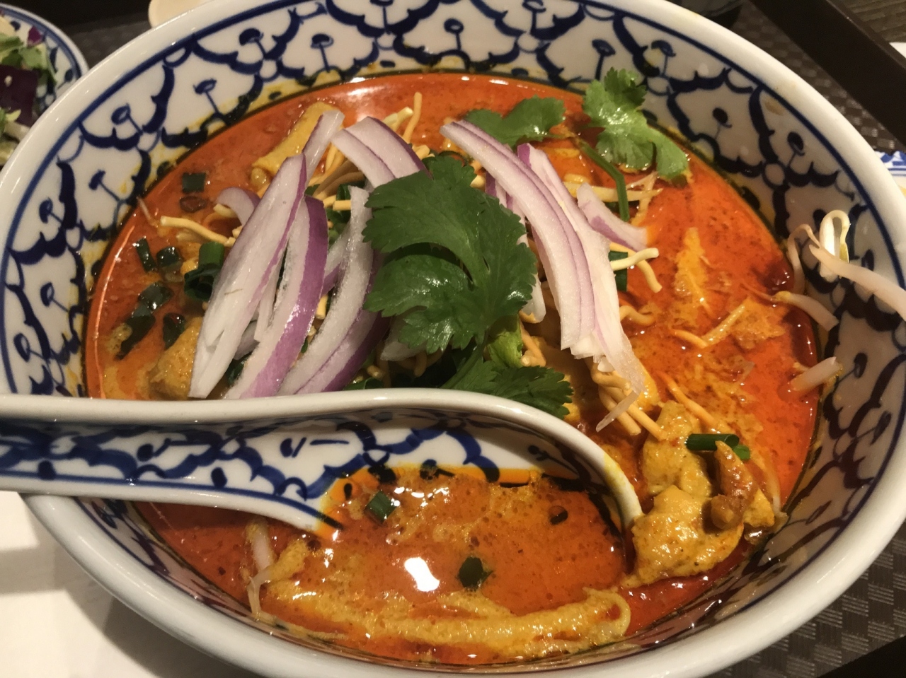 ランチで伺いました。駅から近く便利なのと、ランチは常時10種類ちかくあり、バリエーション豊富です。ランチでカオソーイが食べられるお店は少ないので貴重だと思いました。味は普通ですが、使い勝手はよいのでおすすめです。