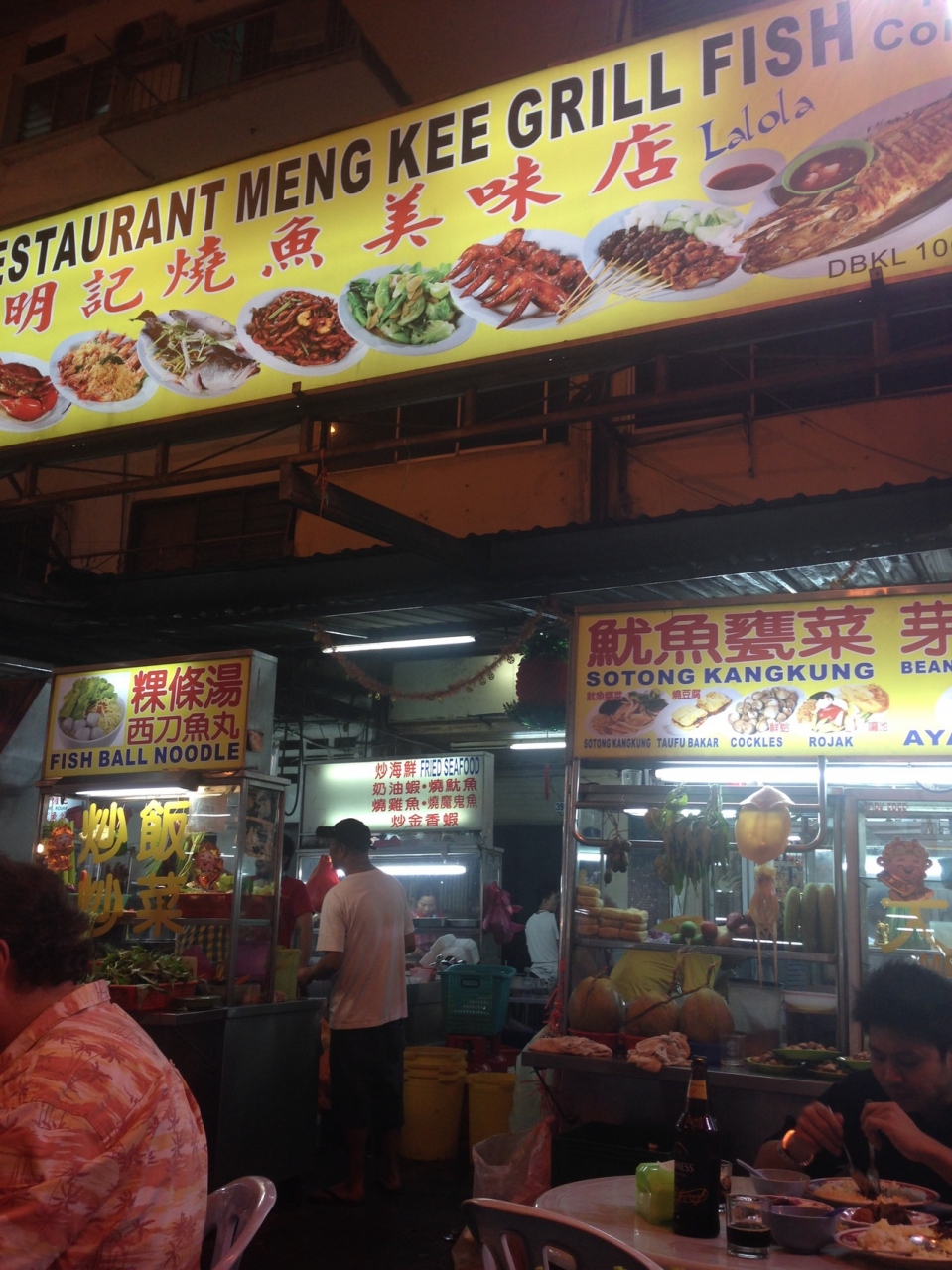 ジャランアローにある屋台レストラン。わいわいした雰囲気が楽しいです。お魚のグリルや貝や野菜の炒め物などをいただきました。食べきれなかった分はドギーバッグにいれてもらえました。シンガポールミーフンなど麺類なども美味しかったです。