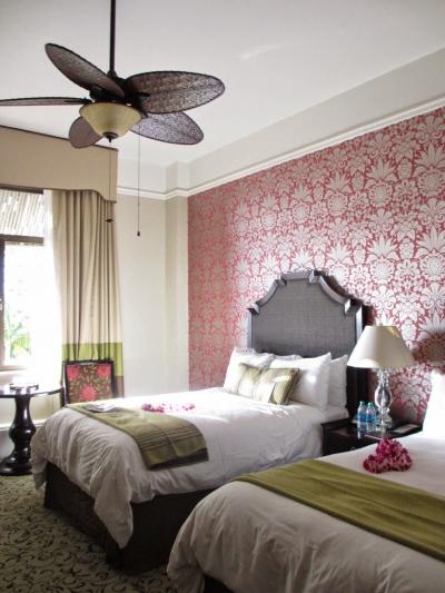 ピンクに輝く素敵なホテル。お部屋もかわいらしく落ち着けるインテリアでした。ワイキキの真ん中ぐらいに位置するので、どこへでもアクセスしやすく便利です。プライベートゾーンのビーチベッドを借りて寝そべるのがおすすめです。
