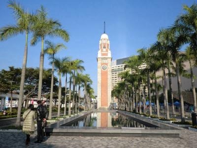 九龍半島がわ、尖沙咀のスターフェリーの乗り場のすぐ近くにある時計台です。海も近く、歴史ある建物がとても雰囲気よいかんじです。香港て確かに暖かいですけど、やしの木とかも生えちゃうんですね。。