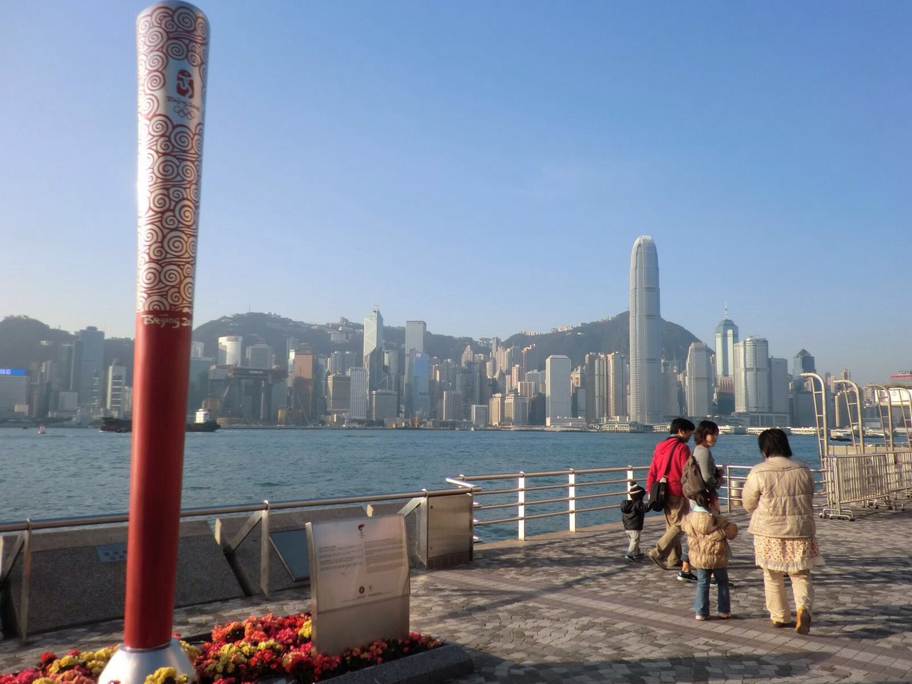 ブルースリーの銅像は大人気。夜景をバックにみんな写真とってます。