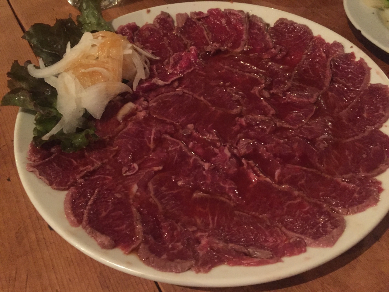 新宿三丁目のビルの6Fにあるお店。いろいろな部位の熟成肉があり、どれも美味しかったです。ワインも手頃なものからいろいろあるので、合わせて選ぶのも楽しいです。お店も広く明るい印象で、個室もあるので使い勝手が良さそうです。