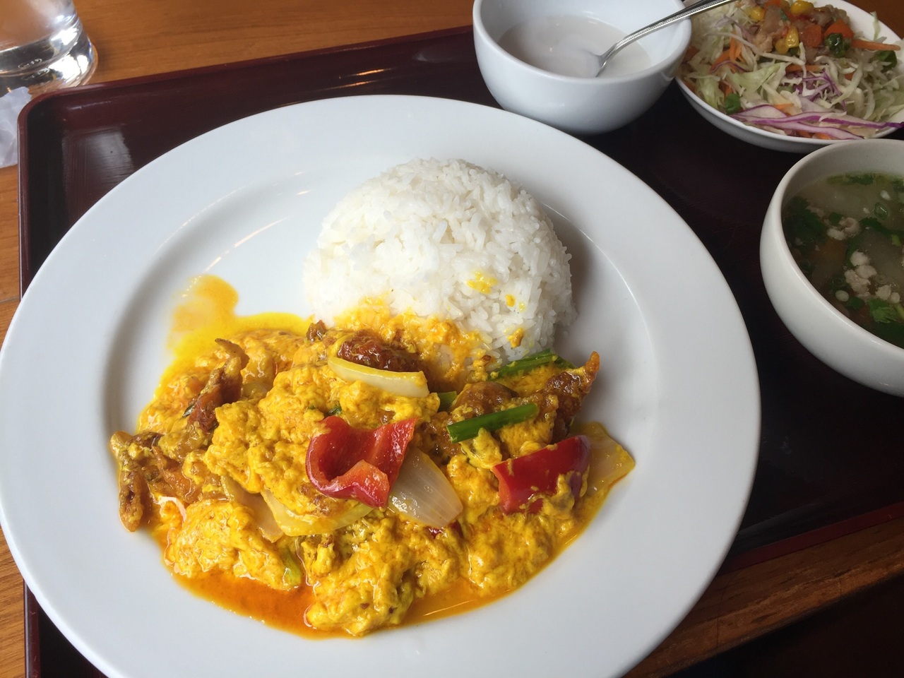 四谷などいくつか支店がある有名タイ料理店です。ランチは日替わりで5種類くらいから選ぶことができますが、今回はプーニムパッポンカリーをいただきました。丁寧に作られた、品のよいお味です。スープやサラダも美味しかったです。