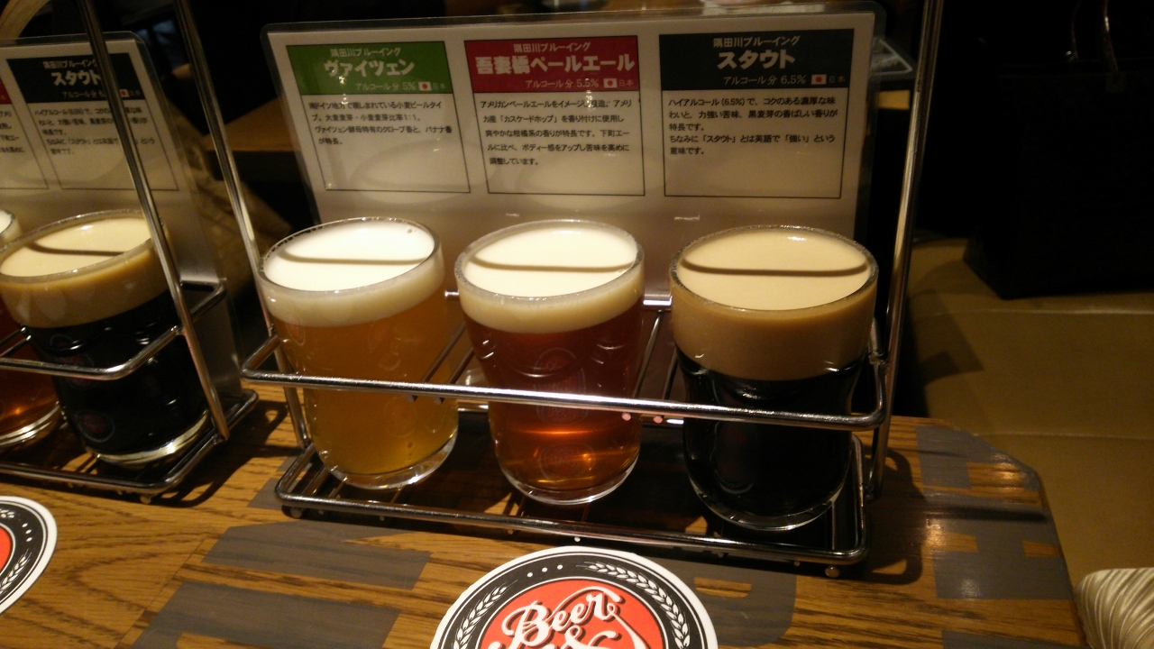 あまり時間がなかったのでさくっと飲みで使いました。KITTEの1階にあるので、東京駅から電車に乗る前にも使いやすいです。食事やビールも各種ありましたが、三種類の今回は飲みくらべセットをいただきました。