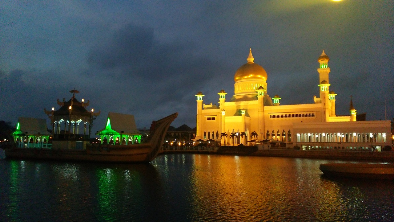 ブルネイの象徴ともいうべきモスク。異教徒はほんの少しのエリアにしか入れませんが、曜日によって時間が決まっているので、事前に確認してきたほうがよいです。ラグーン越しに見る夜のライトアップはとても美しいです。