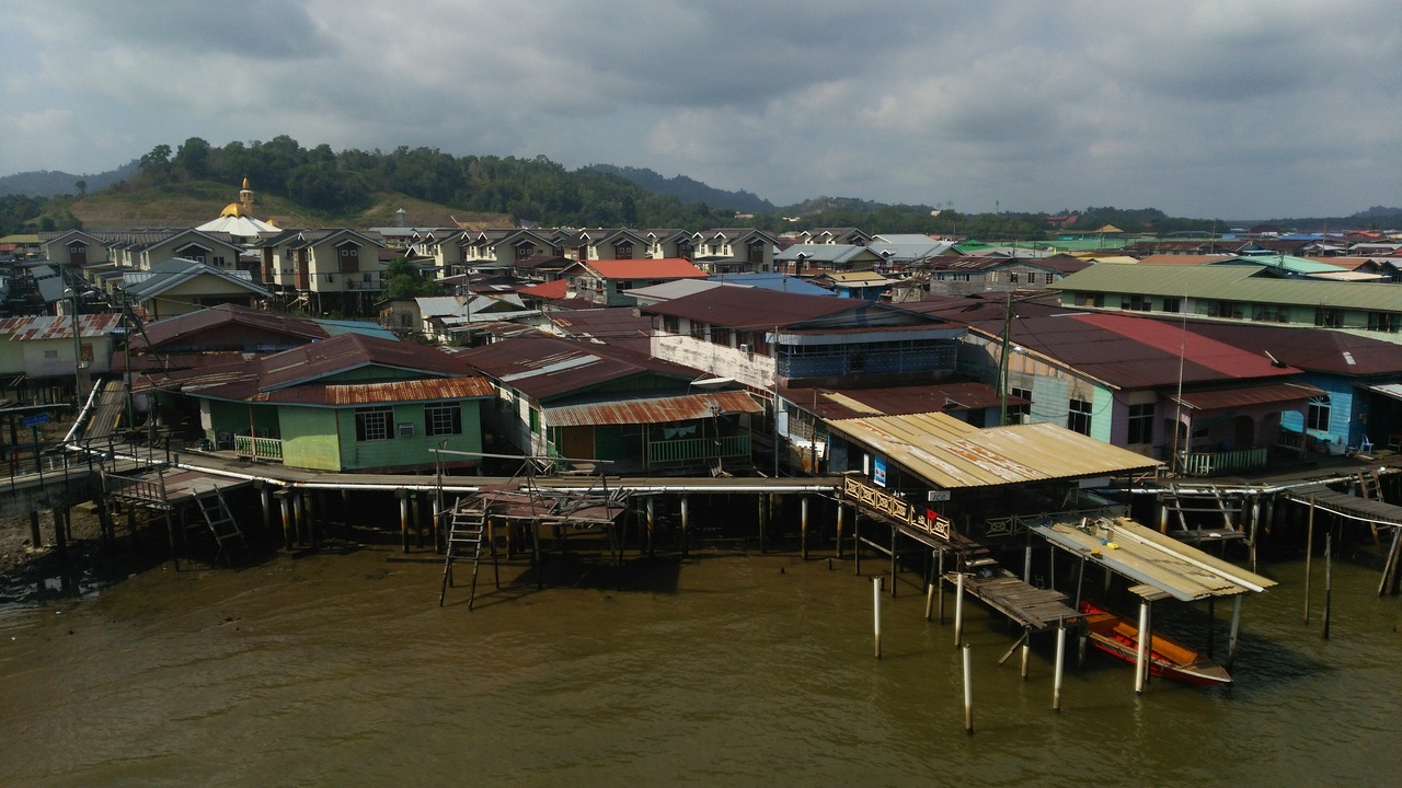 対岸の集落までは片道1$の渡し舟であっという間につきます。手前の新しい家々はかなり立派で驚き。民家の軒先でやっているカフェ的なお店もあり。船着場付近にある資料館は無料で入れます。展望タワーがあり、集落を一望できます。