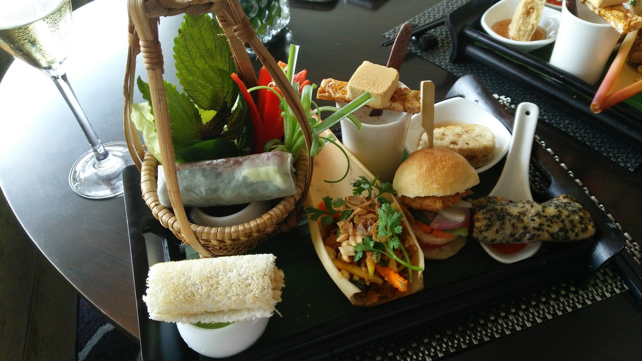 珍しいベトナミーズスタイルのハイティをいただくため、ロビーラウンジに伺いました。盛り付けなども天秤棒をかたどった小さなカゴなどかわいらしいベトナムスタイルで美味しかったです。ヴーヴ・クリコとのセットでいただきました。
