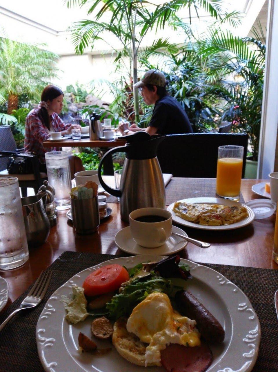 フェアモントオーキッド滞在の際、朝食に利用しました。温かいものも一通りありますが、あまり特筆すべきものはなし。フルーツ、フレッシュジュースなども普通。焼いてくれるオムレツは美味しかったです。テラス席でなかったので解放感がなく残念でした。