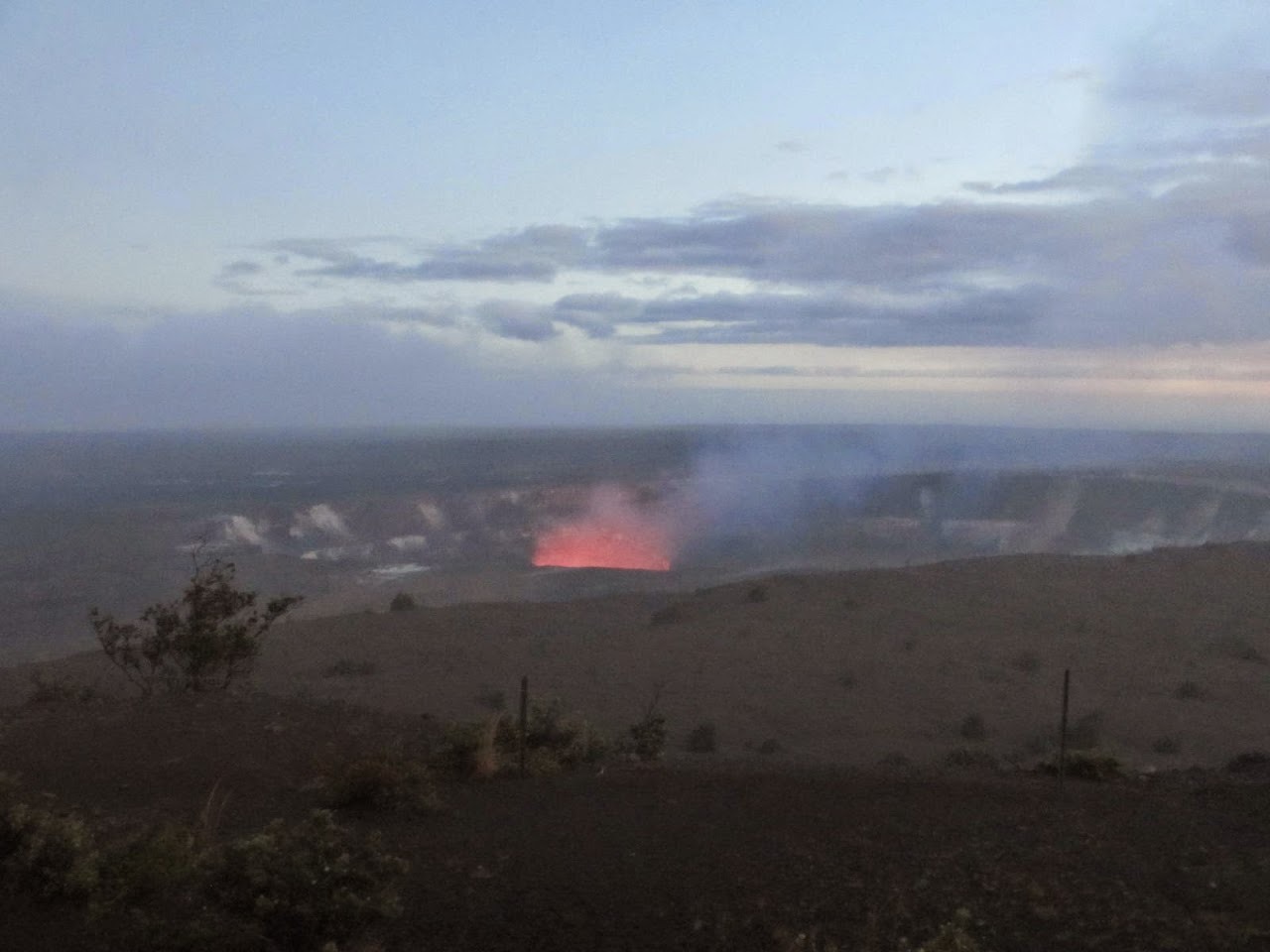 博物館外の展望台からはキラウエア火山のハレマウマウ火口がよく見えます。夕方くらいから行って暗くなるのを見るのがおすすめ。