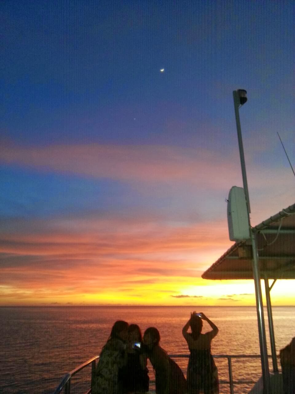 そこまで期待していなかったのですが、夕陽がとにかく綺麗でびっくり。食事はビュッフェ形式、野菜やお肉などいろいろあります。ビールなどの飲み物も飲み放題です。- 旅行時期