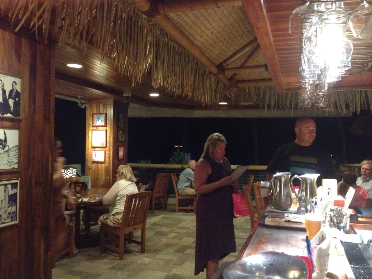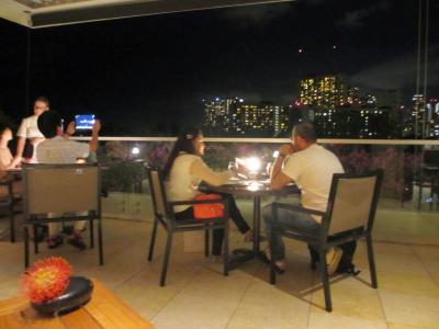 ディナーで行きました。アウトリガー内にあり、便利な立地です。混んでいて1時間待ちくらい、とのことで呼び出しブザーを渡してくれました。バーカウンターで飲みつつ待って、ほどなくテラスの席に。活気ある雰囲気でわいわい楽しめます。
