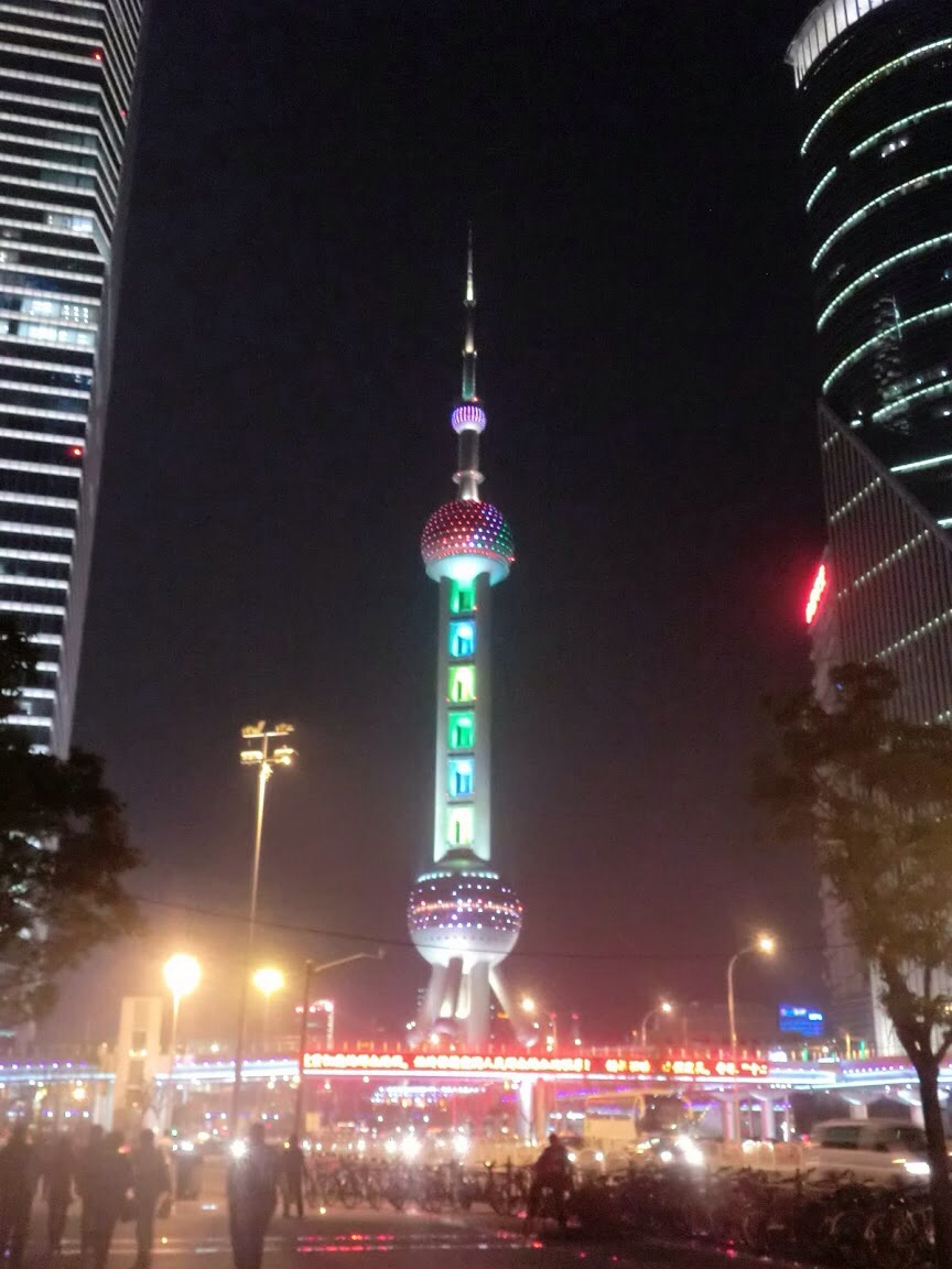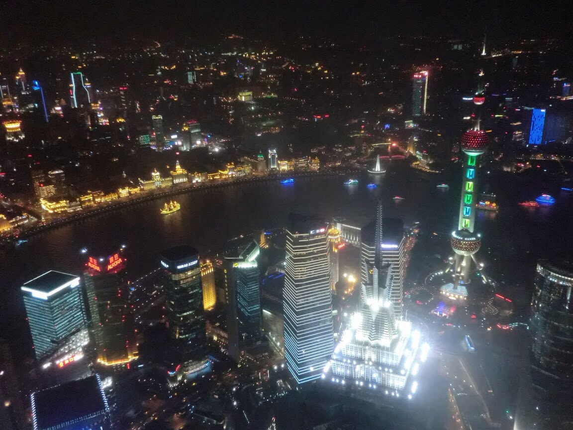 上海環球金融中心-上海ヒルズ。ガラス張りの展望台からキラキラの夜景