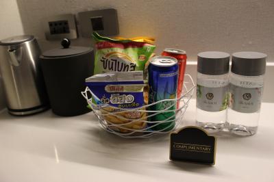 ロビーには温かいドリンクやお水とフルーツ・パウンドケーキのサービスがあり、お部屋の冷蔵庫にあるドリンクは無料と言う、サービス精神旺盛なホテルです。