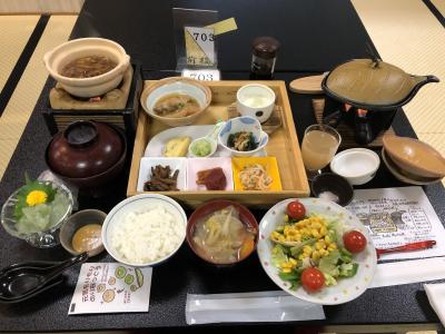 朝食は地元の食材をふんだんに使ったご膳が用意され、ボリューム満点。