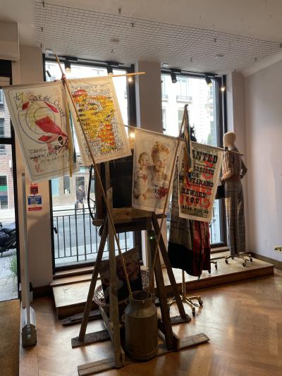 厚いカーテンをくぐり抜けると、20世紀前半を思わせるファッショナブルなコラージュが飾られた不思議な空間でした。
