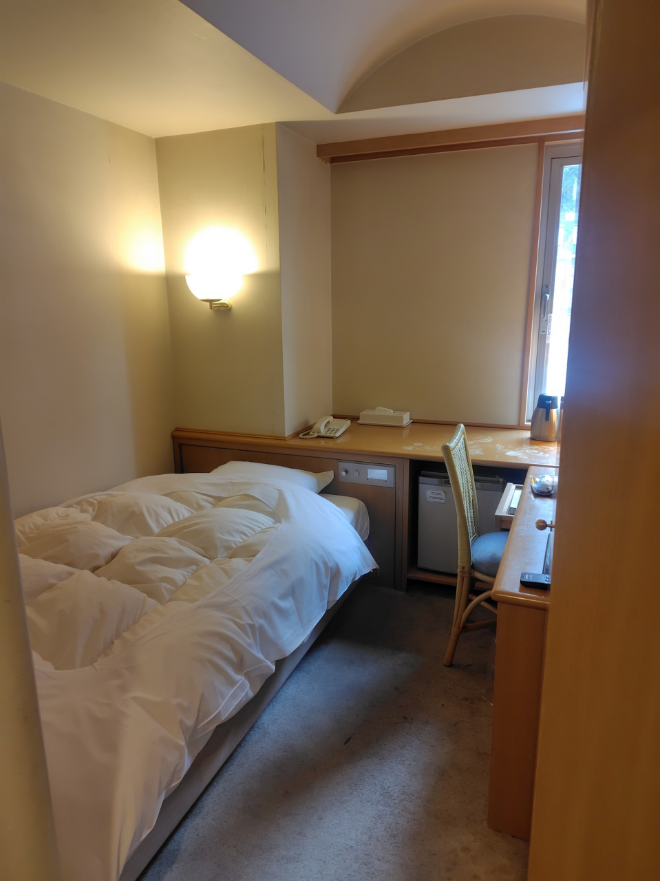 シングルルームはほぼベッドで部屋がいっぱいで大きなスーツケースをガッツリ広げるスペースはありませんでした。