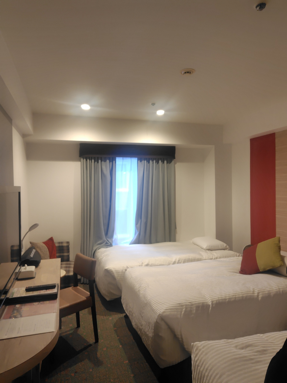 お部屋は清潔ですがとにかく狭い~!大きいスーツケースがっつり広げるなら1個しか無理そう。1人利用なら問題ないけど2人利用はちょっと窮屈すぎるかな。