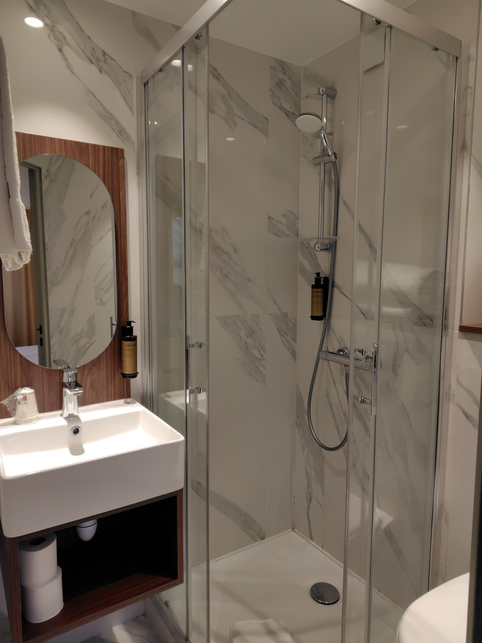 ベッドサイドにコンセントあるのは嬉しい。ちなみにこちらのホテルは全部屋シャワーのみだそうです。