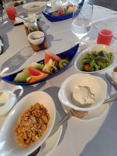 夕食はギリシャ料理ですがフレンチみたいでクセなく全て美味しく頂きました。デザートのケーキが2種類選べるってかなり嬉しい!