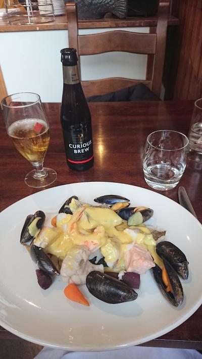 ボイルした数種類の魚にソースがかかってるやつ。写真ではあまり美味しそうに見えませんがめっちゃ美味しかったです。