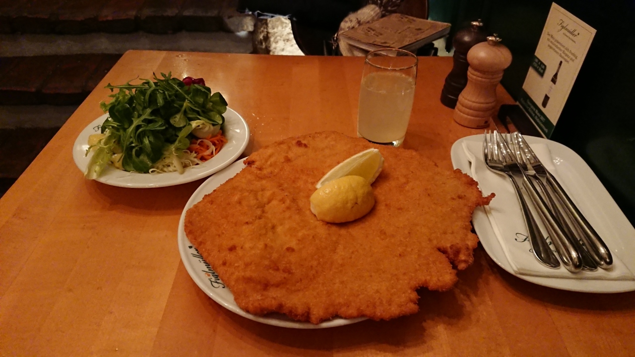 カツレツはやっぱり巨大。美味しいけど途中で飽きてしまい当然一人では食べ切れる事もなく半分以上残す羽目に….