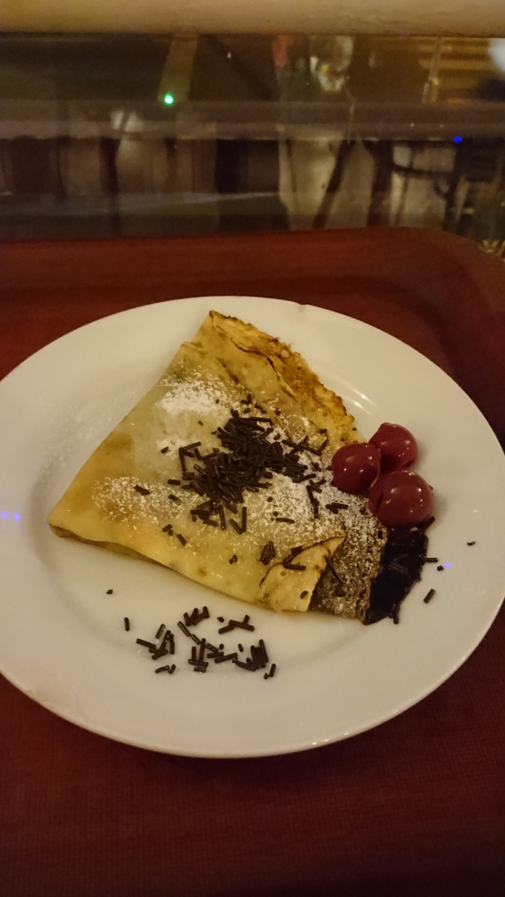 食後のデザートにチェリー&チョコのパラチンタを頂きました。