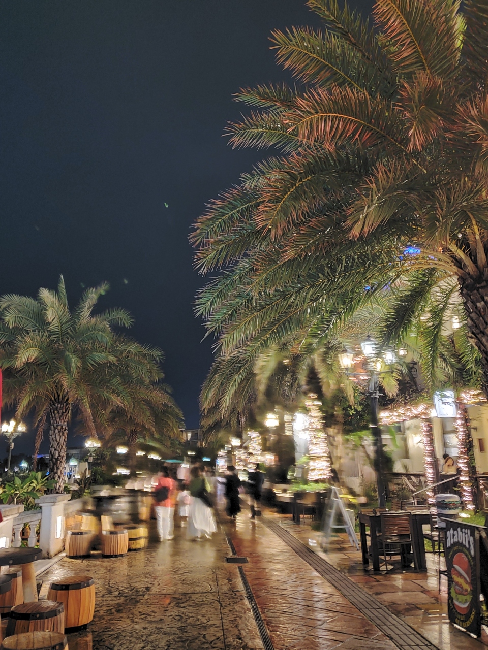 アメリカンビレッジのすぐ横で食事には困らないし夜はライトアップされて綺麗だし、パジャマ等、アメニティも一通り揃ってるし海辺をのんびり散歩もできます。